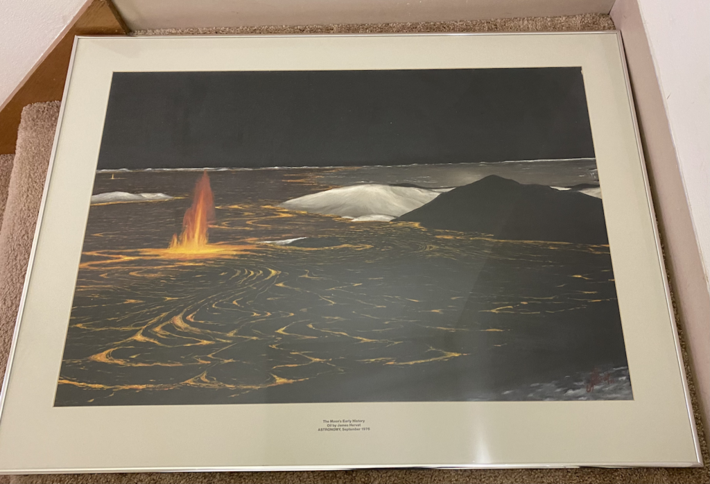 The Moon’s Early History by James Hervat, appeared in September 1976 issue (pg. 6-7), 29.5×39 inches