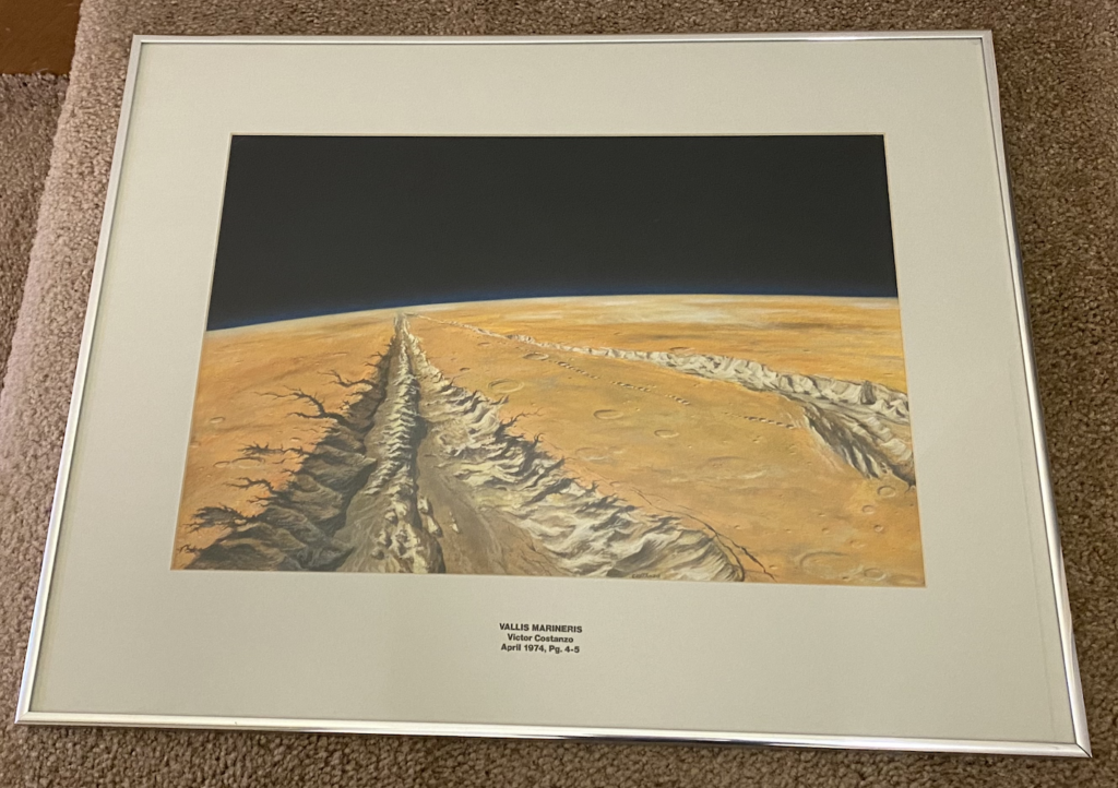 Valles Marineris by Victor Costanzo, appeared in April 1974 issue (pg. 4-5), 24×18.5 inches